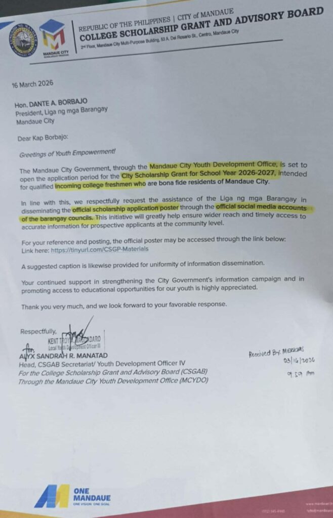 For inquiries and assistance, please visit the Mandaue City Youth Development Office at Mandaue City Hall.
