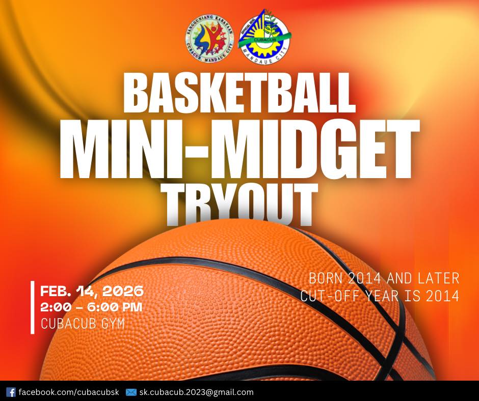 Hey Cubacubnons! Please be informed that the Mini-Midget Basketball Tryouts have been rescheduled due to the Senior Citizenβs Verification activity.